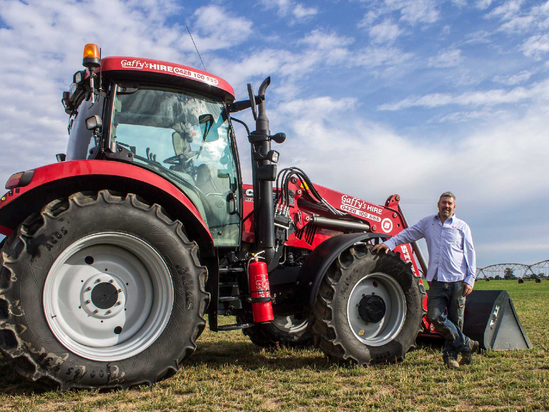 Shown here is Tim Gaffy with one of his fleet of Case IH tractors – his business Gaffy’s Tractor Hire is currently experiencing dramatic growth in farm machinery hire