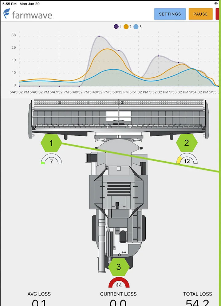 To explain how the Harvest Vision system is intended to work, during long-term testing on one occasion the system found excess losses happening on one side of the header.