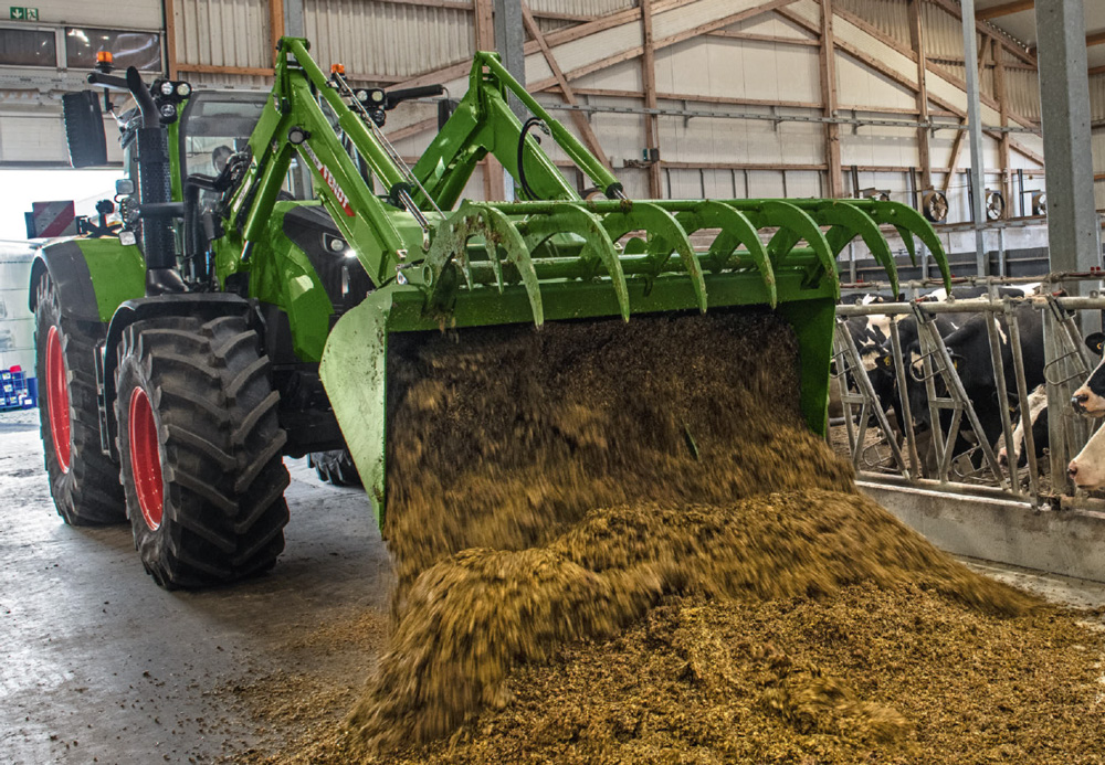 This allows the silage grab bucket to be lifted, tilted and opened at the same time.
