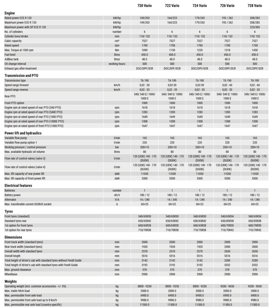 There are five models in this seventh generation abirritation, the Fendt 720 Vario, 722 Vario, 724 Vario, 726 Vario and Fendt 728 Vario.
