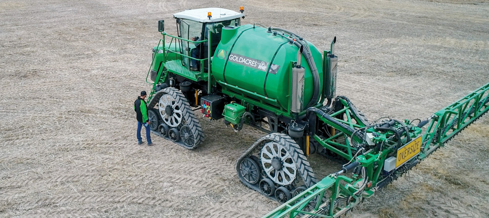 The Goldacres flagship model, the G8 8000-litre Super Cruiser is also available on tracks, four independent Soucy tracks to be exact, with a 48 metre (160ft) tri-fold boom.