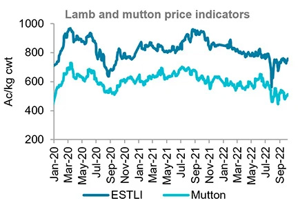Combined lamb and sheep slaughter reached a new high for 2022 of 518,147 in mid-September. This is 72,000 head, or 13.9% below the highest weekly slaughter between October and December achieved in the last five years.