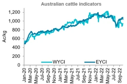Producers watched closely as cattle prices trended higher in the past month. The Eastern Young Cattle Indicator (EYCI) reached 1,076c/kg in mid-September before softening to 1,039c/kg in early-October.