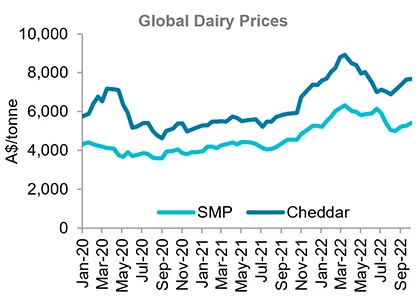 Tight global milk production continues to support dairy prices at above-average levels. New Zealand milk production remained subdued in August, down 4.9% year-on-year. The EU saw some improvement in milk production in July with a 0.5% lift from a year earlier.