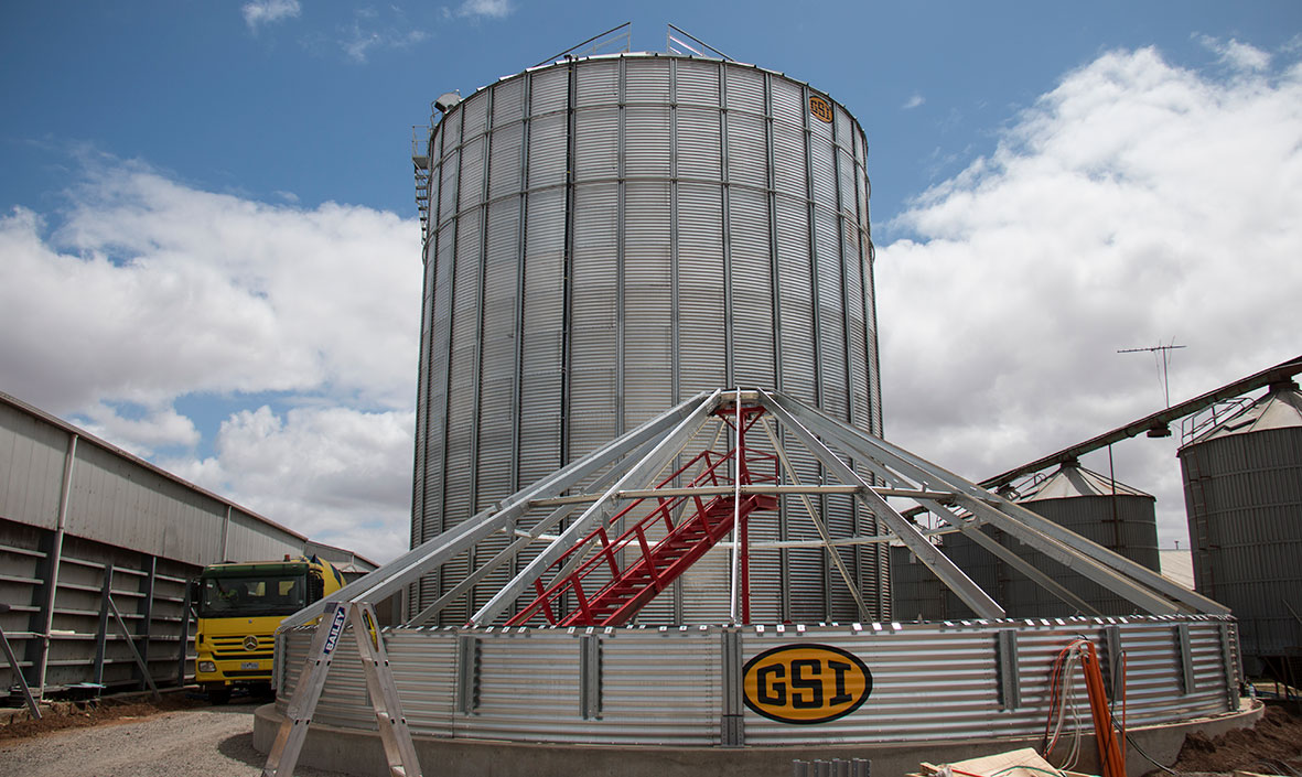 GSI’s product range includes both cone and flat bottom Silos, bucket elevators, drag and belt conveyers, chain loops and even supporting structures. These range in volume from 3 to 30,000 tonnes on-farm capacities through to unlimited large scale commercial volumes.