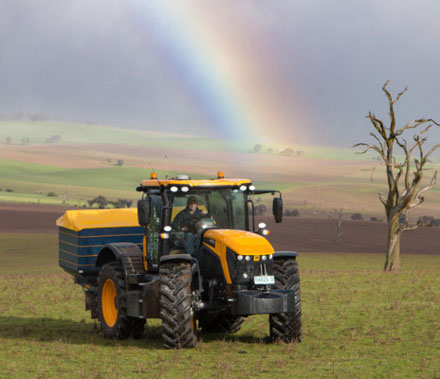 New South Wales spreading contractor Simon Manwaring expects his new agricultural tractor the JCB 4330 Fastrac to significantly improve his efficiency and provide him with greater flexibility in all weather conditions. Source: AFDJ eNews
