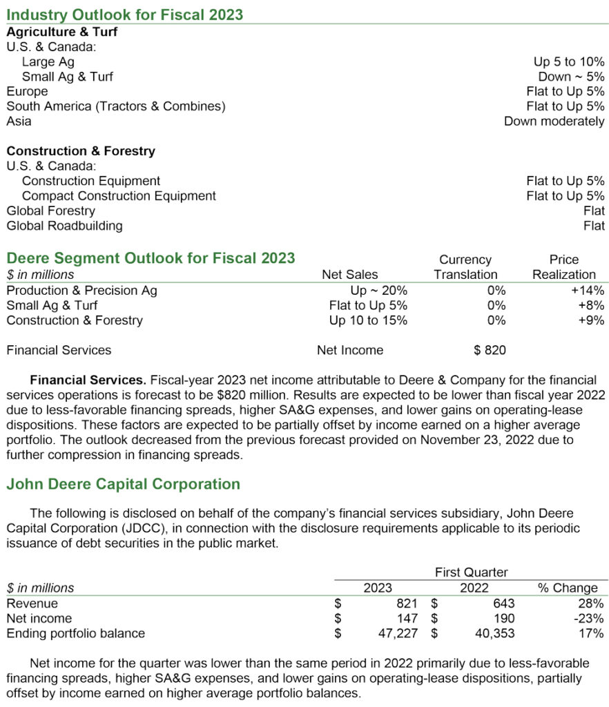 That doesn’t seem to matter as Deere & Company reported a net income of US$1.959 billion for the first quarter that ended January 2023. As a comparison, this result compares with a net income of US$903 million, for the quarter that ended in January 2022.