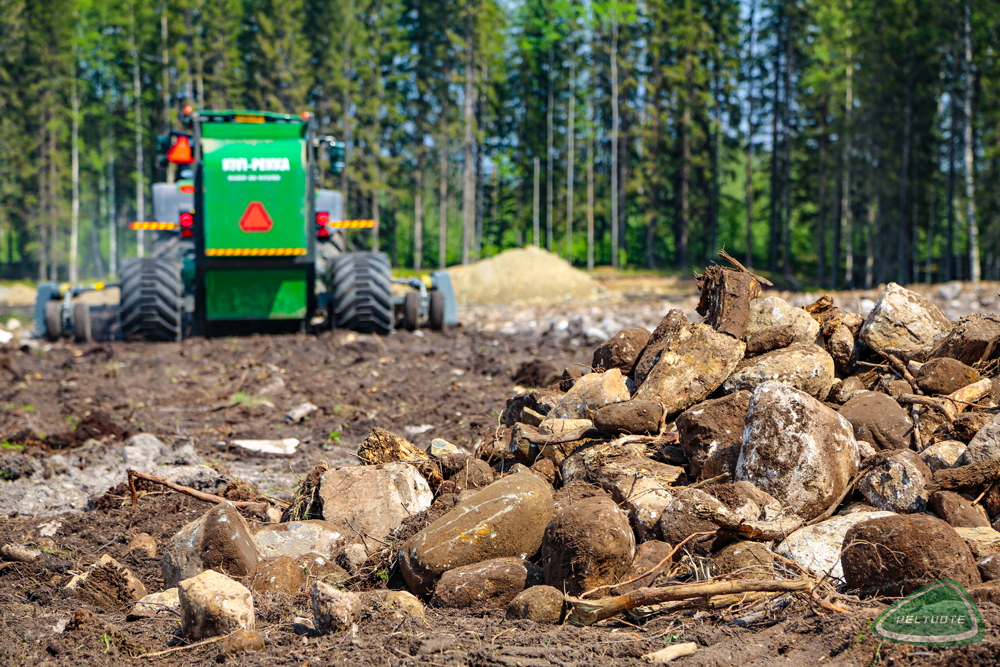 This action is due to the design of the Kivi-Pekka, as it differs to many rock pickers that have a main sieve where the stones are scooped off the ground.