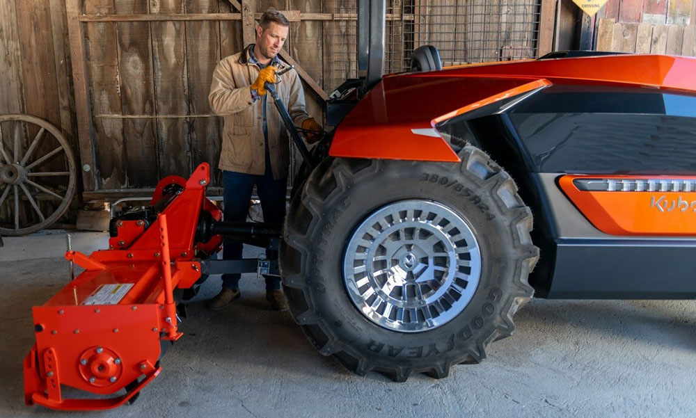 Kubota has designed an electric vehicle to handle ag jobbing with a three-point hitch to carry out all current implement tasks