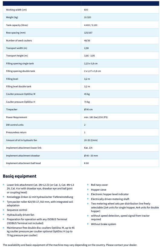 The Solitair PT 600 offers a 6m working width that reduces to 2.98m for road transport. The bare weight is 10,520kg.