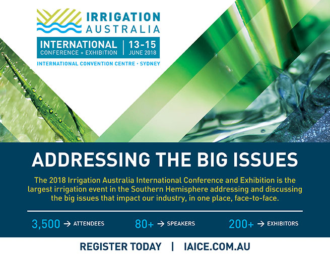 The biennial event – that includes the southern hemisphere’s largest irrigation conference with more than 80 local and international speakers – will be held from 13-15 June at the new International Convention Centre in Sydney.