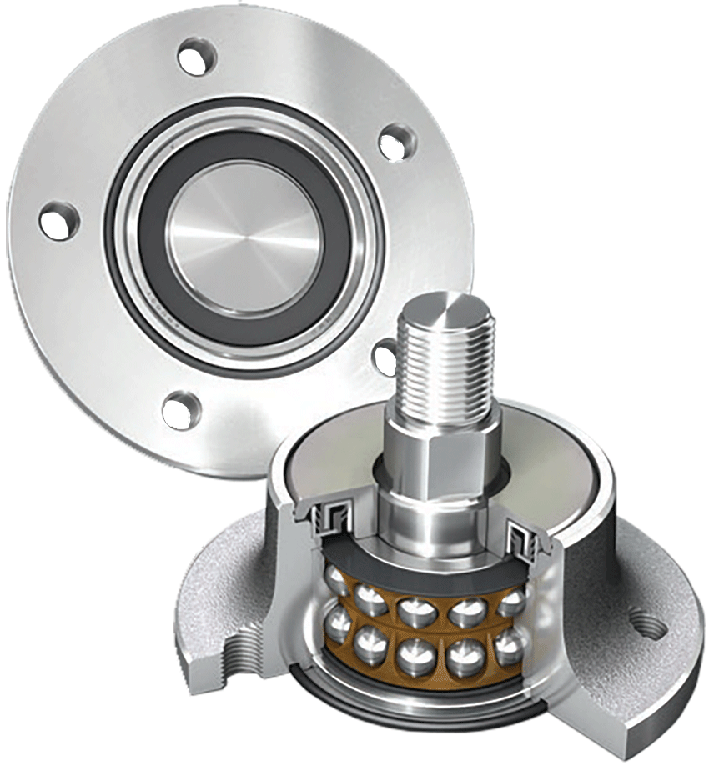 These units comprise double-row angular contact ball bearings capable of supporting very high axial and radial loads.