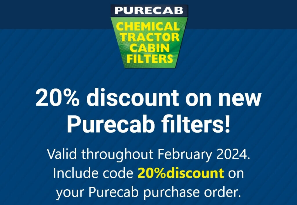Purecab has been the market leader for clean cabin air filters for tractors and sprayers since 1988 and is offering a 20% discount on new filters fitted in February 2024 to celebrate its new factory opening