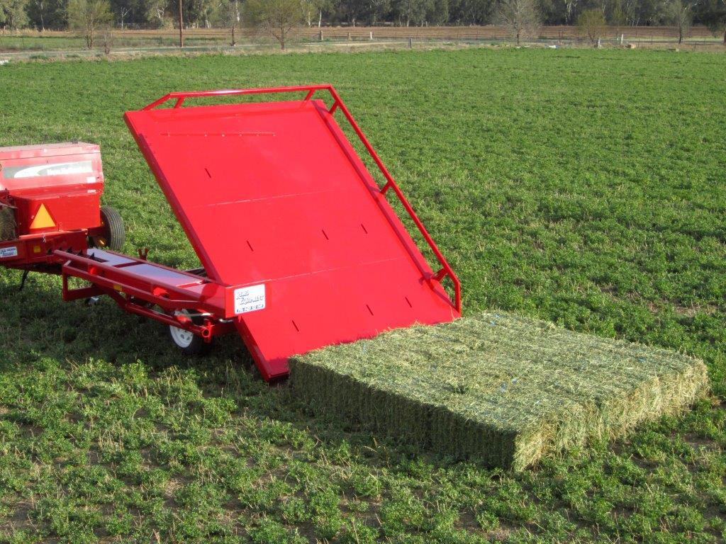 The Accumulator then automatically off loads directly onto the ground ready for pick up and loading using a Hay Grab.