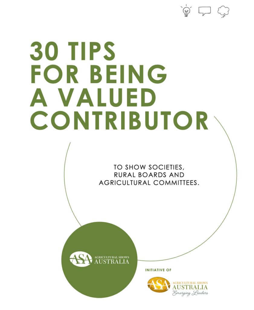 The handbook is available to download at agshowsaustralia.org.au/new-handbook-30-tips-for-being-a-valued-contributor/