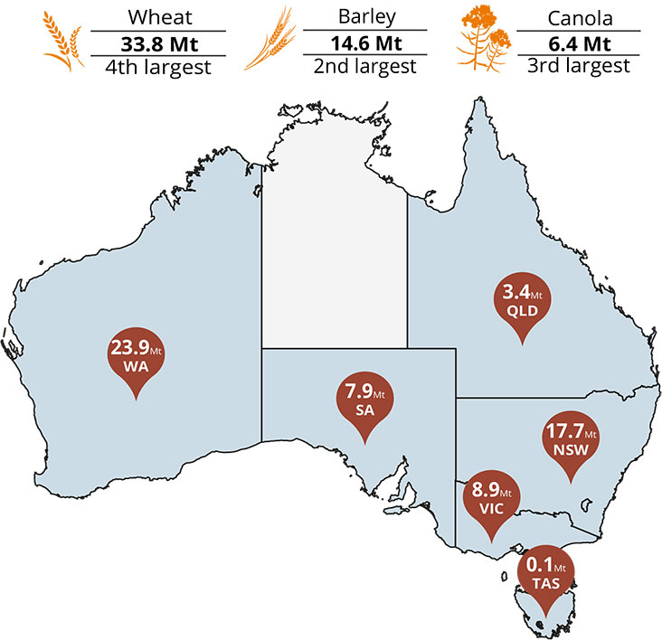 Winter crop production in Western Australia is forecast to increase by 4% to 23.9 million tonnes in 2025-26, up from 23.0 million tonnes in 2024-25.
