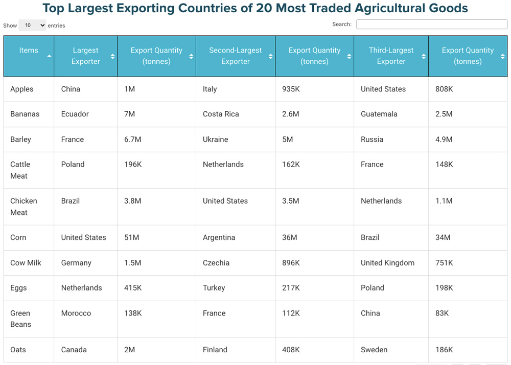 If you want to know what countries in the world grow the most agricultural produce, and in what volume, and what they do with their product, and what it is worth, this article is a must read.